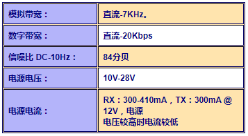 模擬輸入的帶寬為DC-7KHz。觸點每秒最多可切換 50 次,TTL 線路每秒最多可切換 20,000 次。使用標準多模接口時,Tx 和 Rx 模塊之間的距離可能在 0 到 2 英里之間(使用 1550nm 單模光纖接口和 SM 光纖可選 30 英里)。