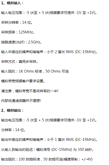 該產品基于 A/D 和 D/A 技術,結合強大的收發器,范圍可達 50 Km,模擬帶寬高達 25 MHz,分辨率為 14 位(84 dB 數字信噪比) )。該產品有3個檔次:頻率帶寬DC-8MHz、帶寬DC-15 MHz、帶寬DC-25 MHz。